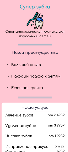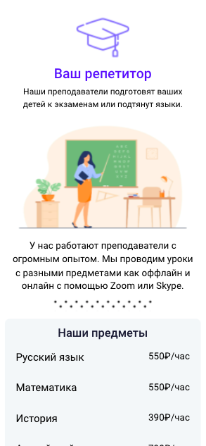 Разместите ваше портфолио или прайс-лист услуг/товаров, расскажите про их преимущества.